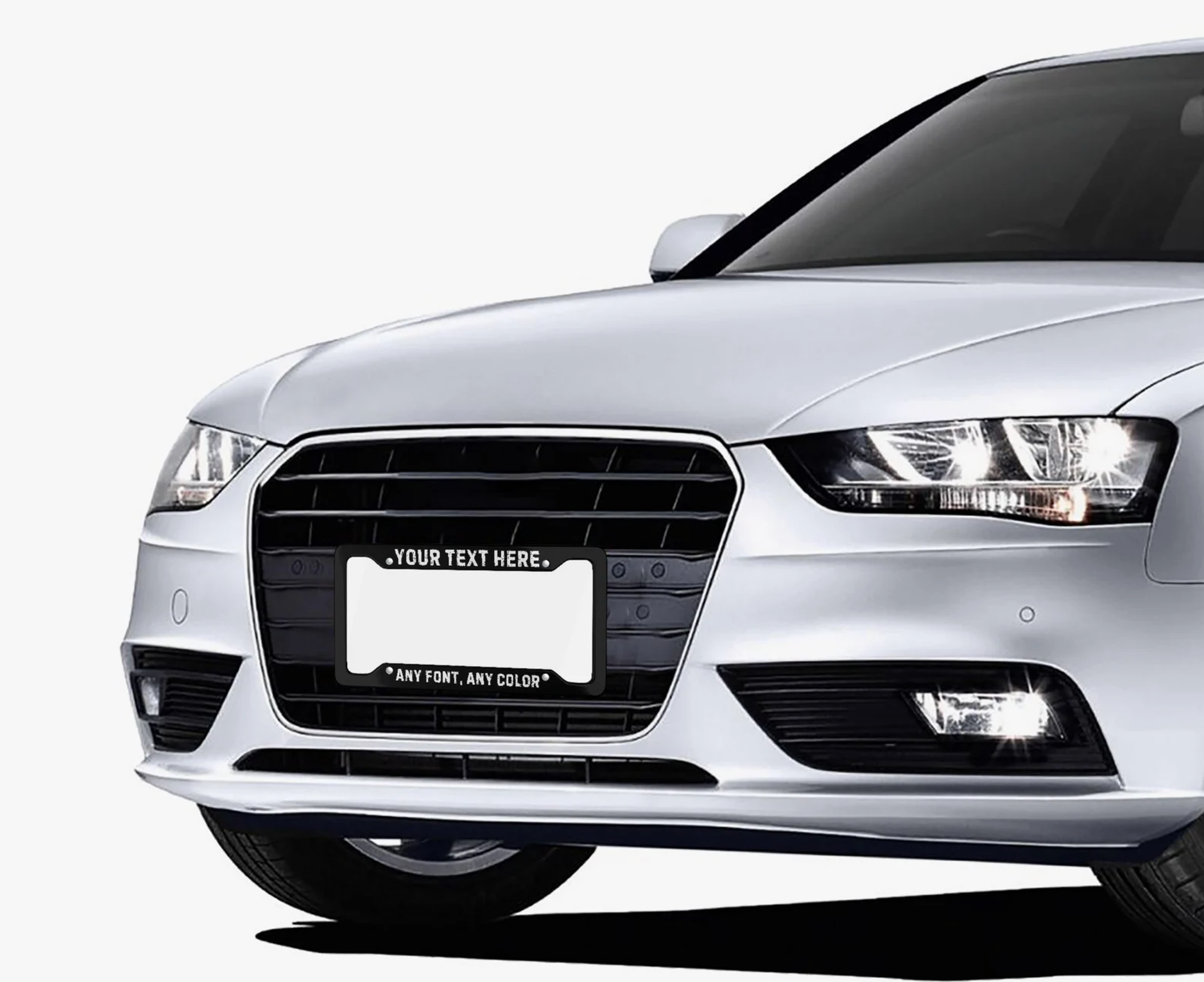 Yes, to change the colour and text of your frames, simply visit the product page, where you can select your preferred colours and enter custom text. The customisation options allow you to personalise the design to match your style and vehicle preferences.